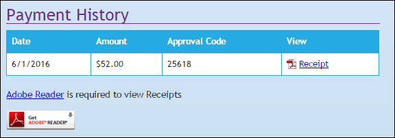 • You can click on any the Receipt link to view and print a receipt of the transaction.