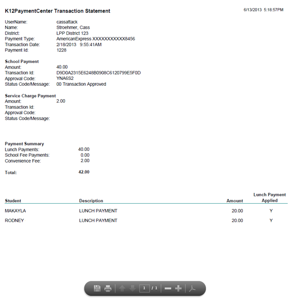 • The report shows all the Meal Payments and School Fees paid with this transaction.